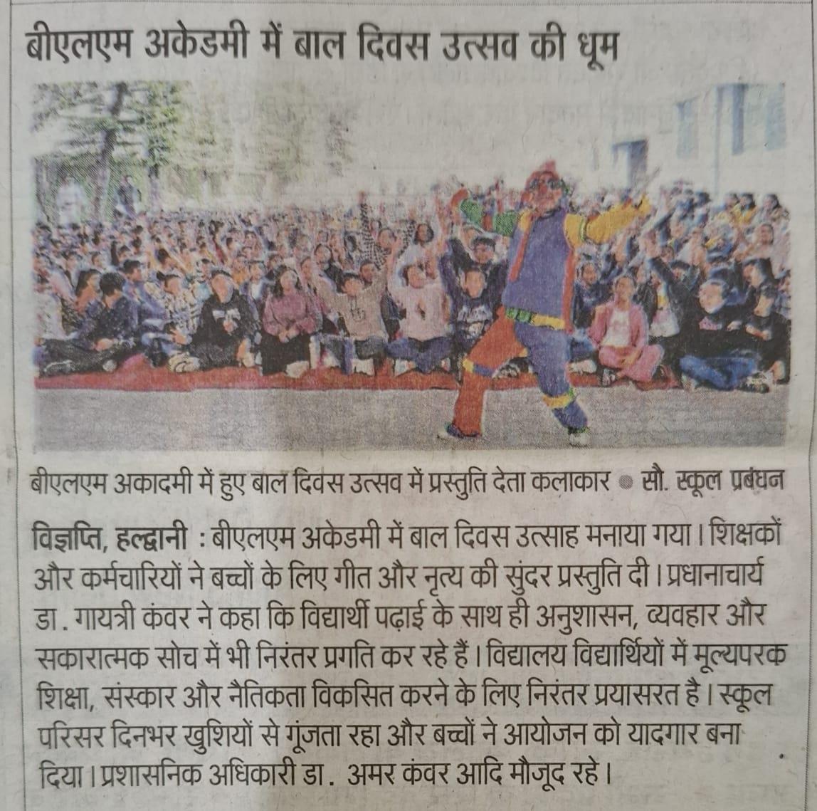 बीएलएम अकेडमी में बाल दिवस उत्सव की धूम