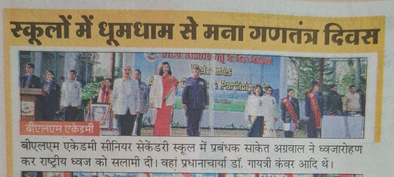 बीएलएम एकेडमी सीनियर सेकेंडरी स्कूल में प्रबंधक साकेत अग्रवाल ने ध्वजारोहण कर राष्ट्रीय ध्वज को सलामी दी। वहां प्रधानाचार्या डॉ. गायत्री कंवर आदि थे।