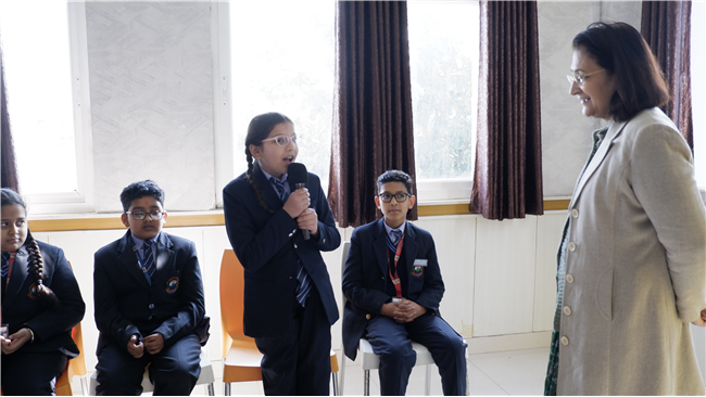 The celebration began on a cheerful and interactive note. Prior to the storytelling session, our respected Principal Ma’am conducted an engaging adjectives activity for the students. The activity encouraged creative thinking and active participation, making learning enjoyable and interesting. The students responded enthusiastically.